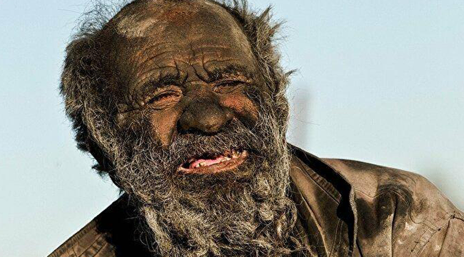 Vücudunu kir tabakası kaplayan adam, 65 yıldır tıraş da olmuyor.
