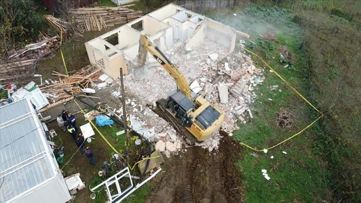 Ekipler, daha sonra iş makinesiyle evin yıkılması için çalışma başlattı.