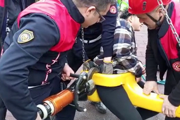 Edinilen bilgilere göre olay kent merkezi Gülyurt Mahallesi Mehmet Akif Ersoy caddesi üzerinde bulunan bir çocuk parkında meydana geldi. Arkadaşları ile parkta eğlenen genç salıncağa bindi. Gencin eğlenmek için bindiği salıncak ise adeta kabusu oldu. Salıncakta sıkışan genci gören arkadaşları durumu Sivas Belediyesi itfaiye ekiplerine haber verdi. Kısa sürede olay yerinde gelen itfaiye ekipleri salıncağı hidrolik makas yardımıyla keserek genci sıkıştığı yerden kurtardı.
