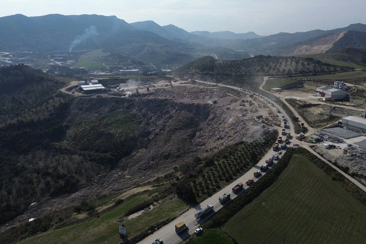 Hatay'da meydana gelen şiddetli depremlerin ardından şehirde bulunan binaların büyük bir kısmı yıkıldı. İlk meydana gelen depremden 19 gün geçmesinin ardından yıkılan binaların bazılarında hala arama kurtarma çalışmaları devam ederken, bazı binalarda çalışmalar tamamlandı. Kurtarma çalışması biten binalara giren kepçe ve kamyonlar, süratla enkaz kaldırma işlemlerine devam ediyor. Hafriyat kamyonları yükledikleri enkazı şehre yakın bir noktaya taşımak için gün içerisinde defalarca sefer düzenliyor. Kamyonların enkazı boşalttıkları alana giderken oluşturduğu metrelerce kuyruk, drone ile havadan görüntülendi.