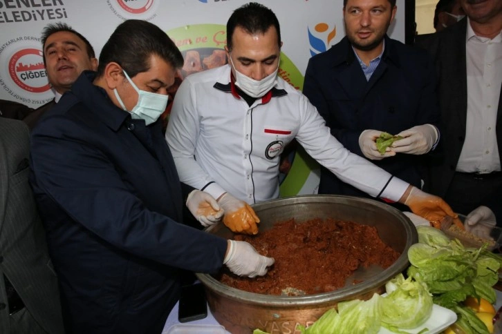 Çiğ köfte hazırlayan ustalar, yine Adıyaman'ı simgeleyen nar, badem ile çeşitli tasarımlar yaptı. Festival kapsamında vatandaşlara tonlarca çiğ köfte, nar ve badem ikram edildi.