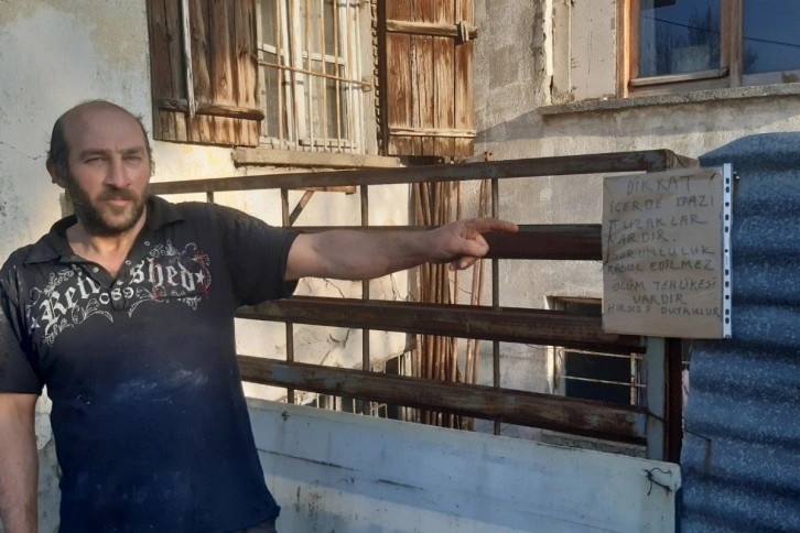 Edinilen bilgiye göre, Borazanlar Mahallesi'nde yaşayan 2 çocuk babası inşaat işçisi Tahsin Bayrak'ın kiracı olduğu ev ve malzemelerini koyduğu deposu hırsızlar tarafından farklı zamanlarda defalarca soyuldu. Bahçesinde beslediği tavukları, inşaat malzemeleri, balkonunda çay içtiği masası ve hurdaları çalınan Bayrak, çareyi evinin çevresine uyarıcı notlar asmakta buldu.