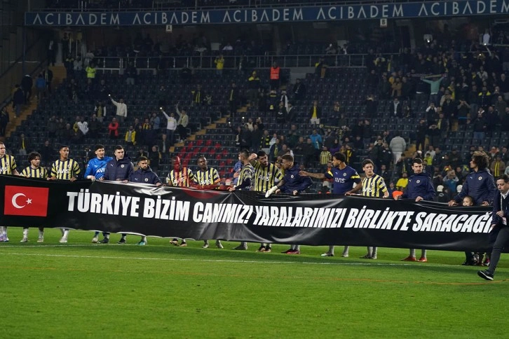 Fenerbahçeli futbolcular, Spor Toto Süper Lig 23. hafta erteleme maçında Konyaspor'u 4-0 mağlup etmesinin ardından anlamlı pankart ile depremzedelere destek verdi. Sarı-lacivertliler, müsabakanın bitiş düdüğüyle birlikte orta sahada toplanarak "Türkiye bizim canımız, yaralarımızı birlikte saracağız" yazılı pankart açtı. Pankartın açıldığı sırada stat hoparlöründen de Ayten Alpman'ın seslendirdiği "Memleketim" ile Mustafa Yıldızdoğan'ın seslendirdiği "Türkiyem" şarkısı çalındı.