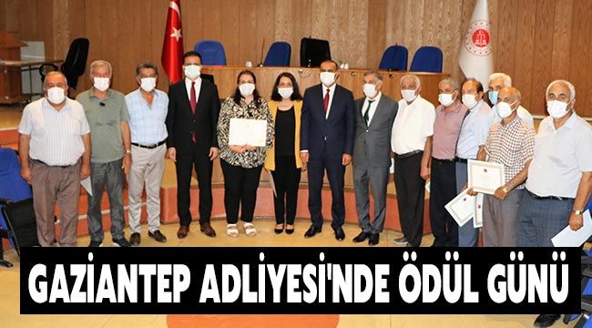 Gaziantep Adliyesi ve Ceza İnfaz kurumlarında görev yapan ve emekli olan 18 personel ile meslekte 25 yılını dolduran 4 personele Adalet Bakanlığınca gönderilen Adalet Bakanı Abdulhamit Gül imzalı teşekkür belgeleri Gaziantep Cumhuriyet Başsavcısı Önder Kemal Sekücü ve Adalet Komisyon Başkanı Mustafa Alçık tarafından verildi.