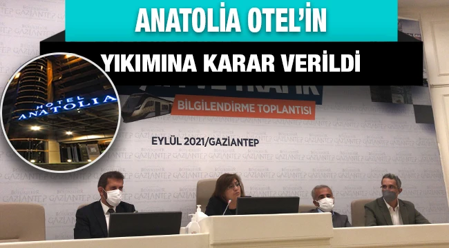 Gaziantep’te ulaşım ve trafik Bilgilendirme toplantısında basın mensuplarının sorularını yanıtlayan Gaziantep Büyükşehir Belediye Başkanı Fatma Şahin, daha önce 5 yıldızlı otel olarak hizmet veren, şu anda tinerci ve ballycilerin uğrak noktası olan, terkedilmiş halde duran Anatolia Otel’in yıkımına karar verildiğini söyledi.