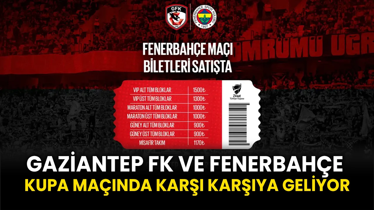Gaziantep Futbol Kulübü, Ziraat Türkiye Kupası grup aşamasında Fenerbahçe'yi konuk edecek. Gaziantep Büyükşehir Stadyumu'nda oynanacak olan bu önemli karşılaşmanın biletleri satışa sunuldu.