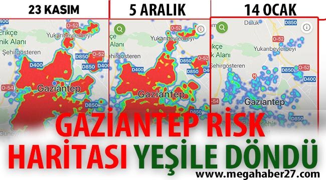 Korona virüs ile yaklaşık 10 aydır süren mücadelede Gaziantep’in riskli durumu sürekli değişkenlik gösterdi. Korona virüs ile mücadelede riskli ilk 5 il arasına giren, sonrasında alınan tedbirler ışığında normale dönen Gaziantep’in mücadele süreci Hayat Eve Sığar (HES) uygulamasında yer alan risk haritasına da yansıdı. 5 Aralık tarihinde neredeyse yeşil alanı bulunmayan ve yüksek riskli bölgelerin yoğunlukta olduğu kent genelinde, Ocak ayı itibariyle kırmızı bölgeler tamamen yeşile döndü.