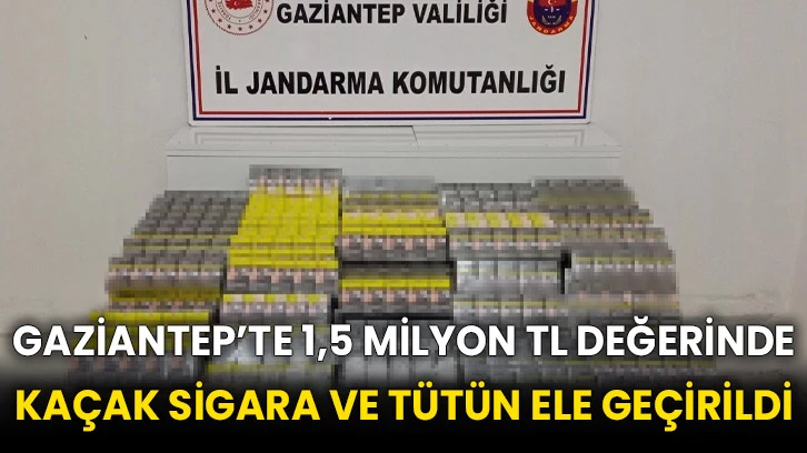 Gaziantep İl Jandarma Komutanlığı ekipleri ve Cumhuriyet Başsavcılığı koordinesinde Şehitkâmil ve Nurdağı ilçelerinde kaçakçılık yaptığı tespit edilen 5 şüpheli şahsa yönelik operasyon yapıldı. Operasyon kapsamında şahıslara ait ikamet ve araçlarda yapılan adli aramalar neticesinde piyasa değeri 1 milyon 550 bin TL olan gümrük kaçağı 12 bin 940 paket sigara ile 1 ton 150 kilo tütün ele geçirildi.