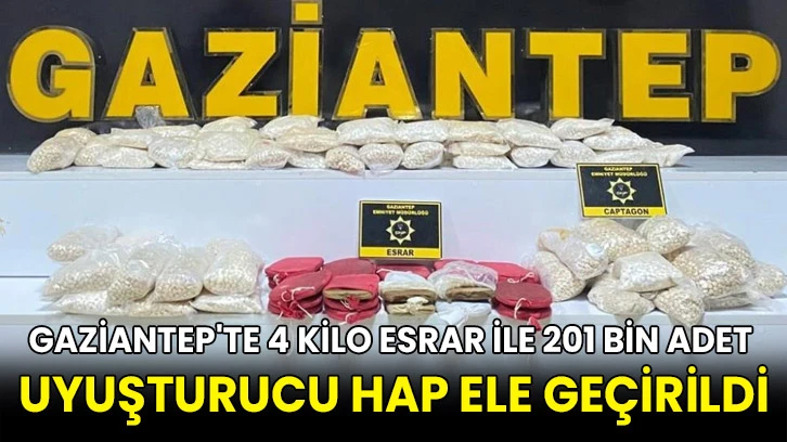 Gaziantep Cumhuriyet Başsavcılığımız koordinesinde İl Emniyet Müdürlüğü Narkotik Suçlarla Mücadele Şube Müdürlüğü ekiplerince uyuşturucu operasyonu yapıldı. Operasyon çerçevesinde Şehitkamil ilçesinde bir adreste arama yapıldı. Yapılan aramada 201 bin adet uyuşturucu hap ile 4 kilo 900 gram esrar ele geçirildi.