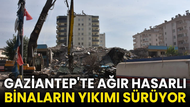 Kentin farklı noktalarında da ağır hasarlı binaların yıkımı sürüyor.