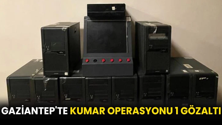 Gaziantep Emniyet Müdürlüğü'ne bağlı Şahinbey İlçe Emniyet Müdürlüğü ekipleri, bir iş yerine yönelik kumar operasyonu yaptı. Operasyon kapsamında baskın yapılan iş yerindeki aramalarda 11 adet kumar oynatılan bilgisayar kasası, 1 adet oyun makinesi, 5 adet hard disk ve 1 adet tabanca ele geçirildi. Olayla ilgili 1 şüpheli şahıs gözaltına alındı.