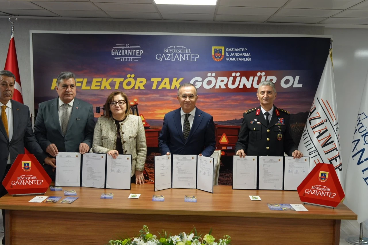 Protokol kapsamında çiftçilere reflektör dağıtımı yapılacağını ifade eden Vali Çeber, çiftçilerden reflektörleri vakit kaybetmeden traktörlerine takmalarını istedi. Projenin, Gaziantep Valiliği koordinasyonunda, Büyükşehir Belediyesi ve İl Jandarma Komutanlığı iş birliğiyle hayata geçirildiğini kaydetti.