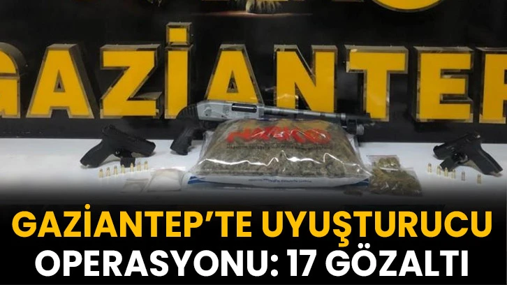 Gaziantep Emniyet Müdürlüğüne bağlı Narkotik Suçlarla Mücadele Şube Müdürlüğünce Cumhuriyet Başsavcılığı koordinesinde sokak satıcılarının yakalanmasına yönelik 26 Mayıs'ta operasyon düzenlendi. Operasyonda 2 kilo 240 gram esrar, 150 gram metamfetamin, 5 gram sentetik kannabinoid (bonzai) maddesi, 2 adet tabanca ve 1 adet tüfek ele geçirildi. Operasyon sonucunda yakalanan 17 şüpheli hakkında yasal işlem başlatıldığı bildirildi.