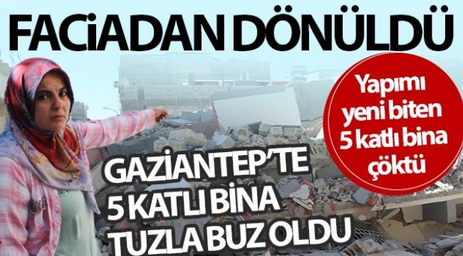 Olay, merkez Şahinbey ilçesine bağlı Çağdaş Mahallesi’nde meydana geldi. Edinilen ilgilere göre yapımı yeni tamamlanmış 5 katlı bir bina gece saatlerinde çöktü. 5 katlı bina bir anda tuzla buz olurken yıkılan bina çökme esnasında yan tarafındaki 2 apartmana ağır hasar verdi. Mahalle sakinleri binanın çökme anında çıkan sesle bir anda uykudan uyanırken çöken bina mahalle sakinlerine korku dolu anlar yaşattı. Çöken binanın sokağına park edilen 3 otomobilde çöken binanın enkazının altında kaldı.