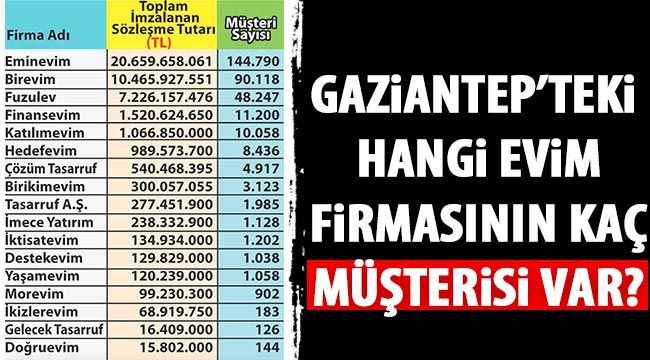 Türkiye genelinde en çok müşterisi olan birinci sırada 144.790 ile Eminevim gelirken, ikinci sırada 90.118 ile Birevim, üçüncü sırada 48.247 ile Fuzulev gelirken, Gaziantepli tek şirket 183 müşteri ile İkizlerevim olduğu ileri sürüldü.