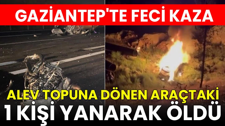 Gaziantep'te iki aracın çarpışması sonucu araçlardan biri uçuruma uçtuktan sonra alev topuna döndü. Alev topuna dönen araçtaki bir kişi feci şekilde yanarak hayatını kaybederken kazada 5'i ağır toplam 8 kişi de yaralandı. Feci kazanın ardından aracın alev alev yandığı anlar ise cep telefonu kamerasına yansıdı.