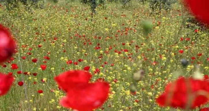 Kahramanmaraş'ın kırsal alanlarında çiçek açan gelincikler doğayı süsledi.