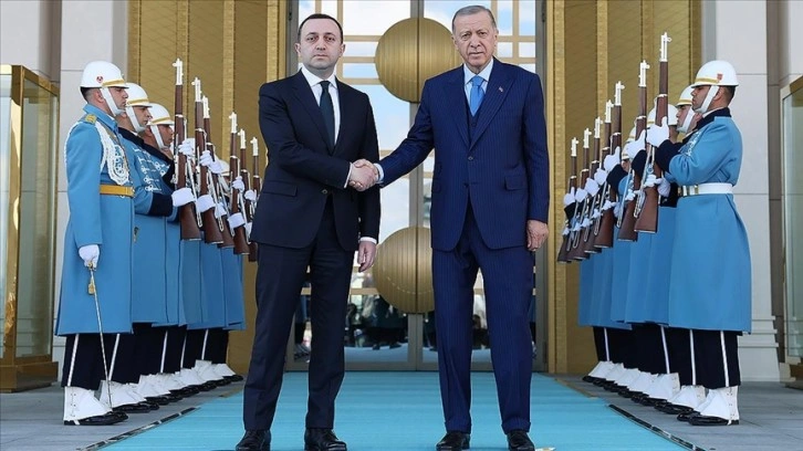 Cumhurbaşkanı Erdoğan, Garibaşvili'yi, Cumhurbaşkanlığı Külliyesi giriş kapısında karşıladı.