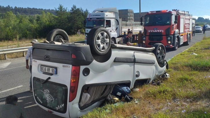D-100 kara yolunda İstanbul istikametine seyreden Ayşe Yadigar T. idaresindeki 06 AN 9138 plakalı hafif ticari araç, Köroğlu mevkisinde refüje çarparak takla attı.