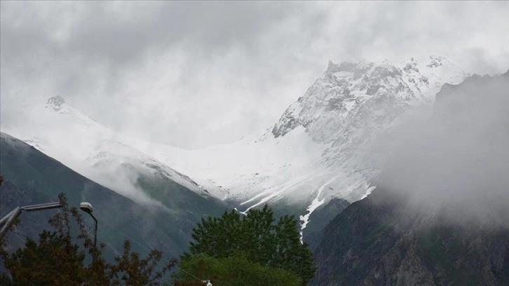 Hakkari'de kent merkezinde etkili olan sağanağın ardından yüksek kesimlere kar yağdı.
