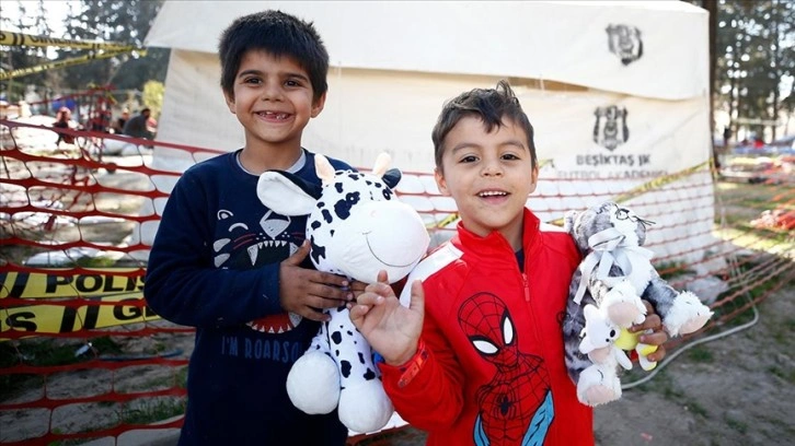 Antakya Beşiktaşlılar Derneği yetkilileri, Hatay'a getirilen oyuncakları merkez Antakya ve Defne ilçelerinde çadır kentlerdeki çocuklara dağıttı.