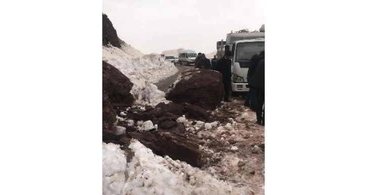 Adıyaman'ın Çelikhan ilçesinde kar yağışından dolayı meydana gelen heyelan yolu trafiğe kapattı.