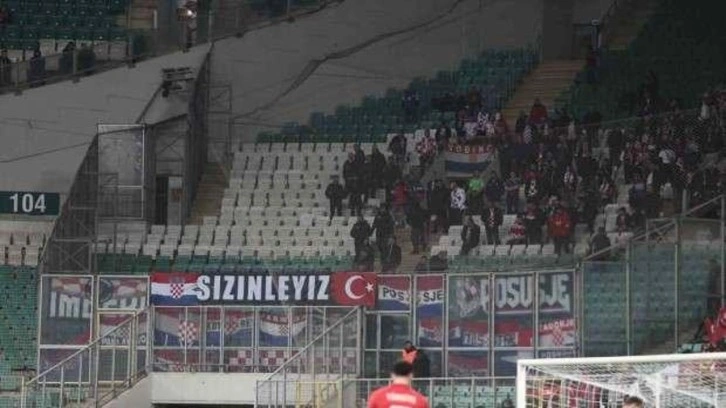 Karşılaşma için Bursa’ya gelen Hırvat taraftarlar da depremden etkilenen vatandaşlarımızı unutmadı. Hırvat taraftarların yer aldığı tribünde ‘Sizinleyiz’ yazılı pankart asıldı.