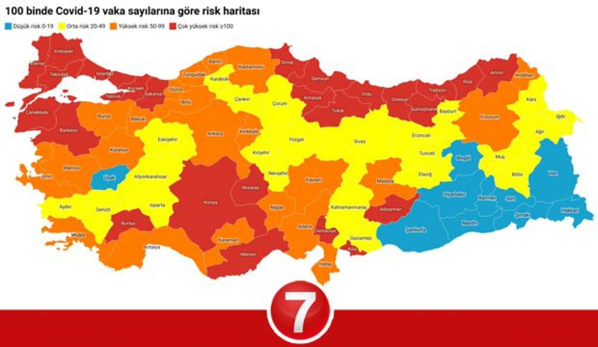 Sokağa çıkma yasakları hangi illerde kaldırıldı sorusu araştırma konusu olmaya devam ediyor. Sağlık Bakanı Fahrettin Koca tarafından yapılan güncel açıklamaya göre; "Kontrollü normalleşme için illerimizin 100.000 nüfusa karşılık gelen haftalık vaka sayılarını içeren insidans haritasının güncel hali ektedir. Yüksek riskli illerimiz risklerini düşürmek için daha tedbirli olmalı. Normalleşme kontrollü gerçekleşmeli." dedi. İşte illere göre vaka sayılarının açıklandığı güncel risk haritası...
