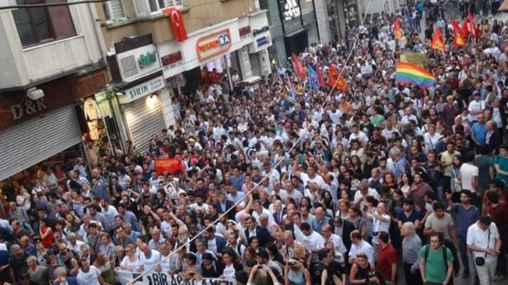 Gezi Parkı olaylarının 10. yılı dolayısıyla Beyoğlu Sakız Ağacı Sokak'ta toplanan Türkiye Komünist Partisi üyeleri, İstiklal Caddesi'nde ellerindeki döviz ve pankartlarla slogan attı.
