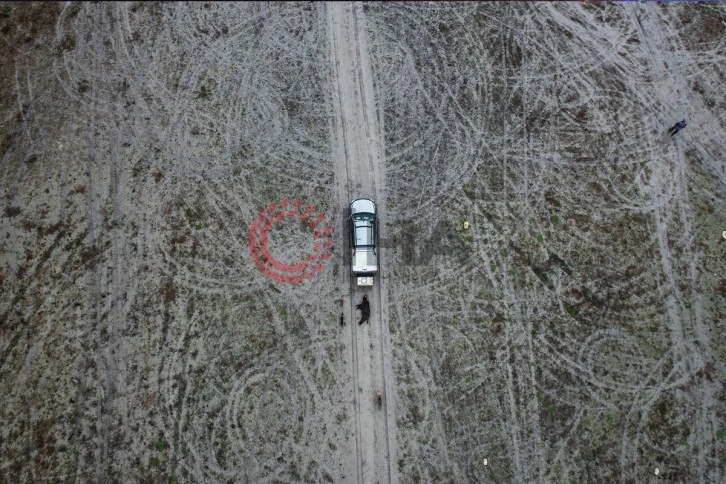 Bölgede avlanma yapan avcıların av köpekleri ve arazi araçları ile yaptıkları arama dron ile havadan görüntülendi. Görüntülerde avcıların geniş alana yayıldığı ve avcılık yaparken etkisiz hale getirdikleri domuzu, arazi aracının arkasına bağlayarak sürüklediği görülüyor.