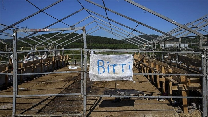 Sancaktepe'de kurulan kurban pazarında, belediye ekiplerince çadırların toplanması ve alanın temizlenmesi için çalışma yürütüldü.
