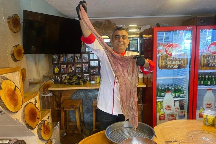 Kadıköy'de 11 yıllık şırdan ustası Adanalı Eşref Yıldız, izlediği belgeselden esinlenince Lübnan'dan getirttiği yaklaşık 1,5 metre uzunluğunda olan dev deve şırdanını, yaklaşık 5 saatte pişirerek bir ilke imza attı.