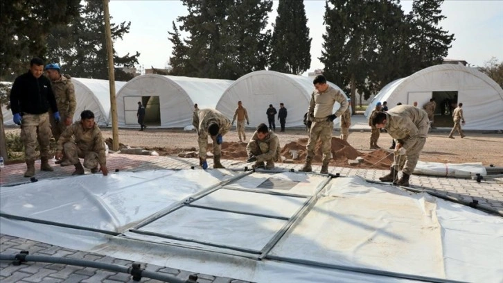 Mehmetçik, aynı mahalledeki yaklaşık 5 dönüm alana, 112 metrekare büyüklüğünde 28 çadırı 1 günde kurdu.