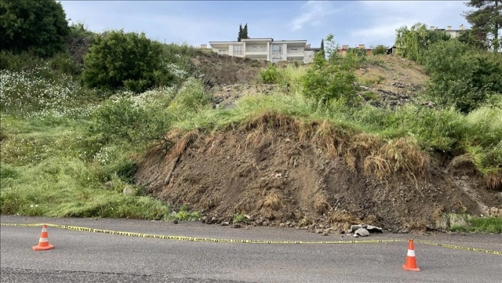 Kamil Güleç Caddesi yönüne kayan toprağı fark eden vatandaşlar durumu yetkililere bildirdi.