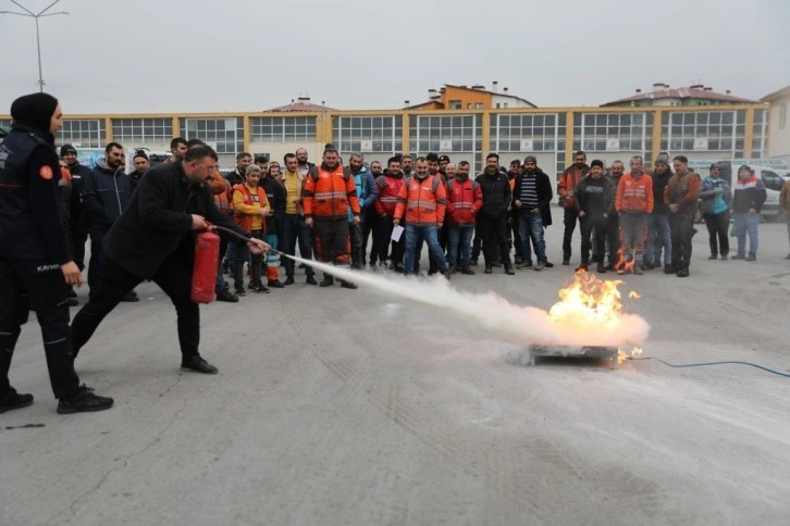 Büyükşehir Belediyesi İtfaiye Daire Başkanlığı personeli tarafından saha çalışanlarına yönelik yangın tatbikatı ve eğitimi gerçekleştirildi. Kocasinan Belediyesi’nin Oruçreis Mahallesi’nde bulunan teknik atölyesinde uygulamalı olarak gerçekleştirilen eğitimde; yangının çıkış sebepleri, sınıflandırılması, yangın söndürmede kullanılan maddeler, acil durumlarda alarm ve tahliye planlaması gibi konular hakkında katılımcılara bilgiler verildi. Eğitimin ardından, katılımcılar mutfak ocağında ve elektrikli aletlerde meydana gelen yangına nasıl müdahale edilmesi gerektiğini uygulamalı olarak gerçekleştirdi. Ardından belediye çalışanları itfaiye ekiplerinin kontrolü altında yakılan ateşi yangın tüpüyle söndürdü. Başarılı olan tatbikat, gerçeğini aratmadı.