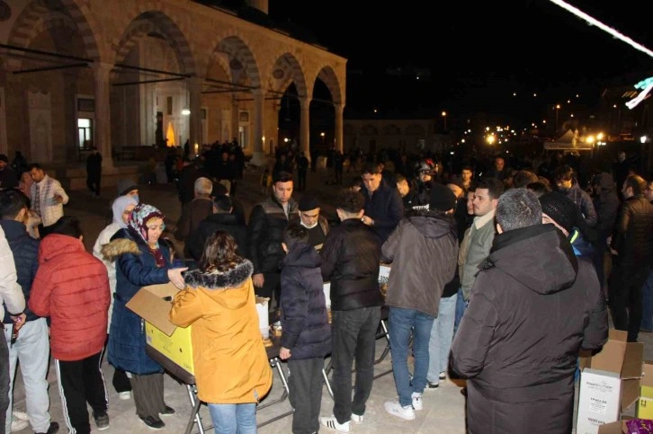 Amasya’da lise öğrencileri Regaip Kandili dolayısıyla okulda helva yapıp cami önünde halka dağıttı.