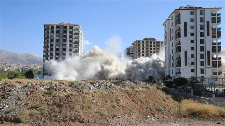 Yeşilyurt ilçesine bağlı Bostanbaşı Mahallesi'nde depremlerde ağır hasar alan 12 katlı 2 binanın yıkımı için patlayıcı kullanıldı.