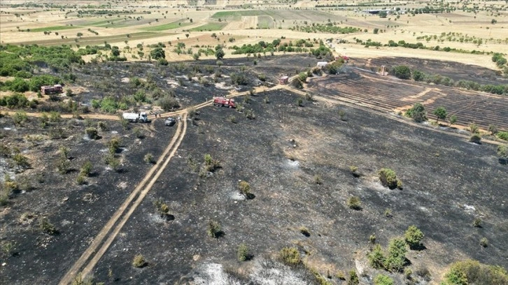Manisa Büyükşehir Belediyesinden 20 itfaiye görevlisinin yanı sıra Esenyazı ve Sandal mahallelerinden vatandaşların da desteğiyle sürdürülen çalışmalar sonucu yangın kontrol altına alındı.