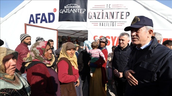 Akar beraberinde Genelkurmay Başkanı Orgeneral Güler ile depremlerin yıkıma yol açtığı Gaziantep'in İslahiye ve Nurdağı ilçelerini ziyaret etti.