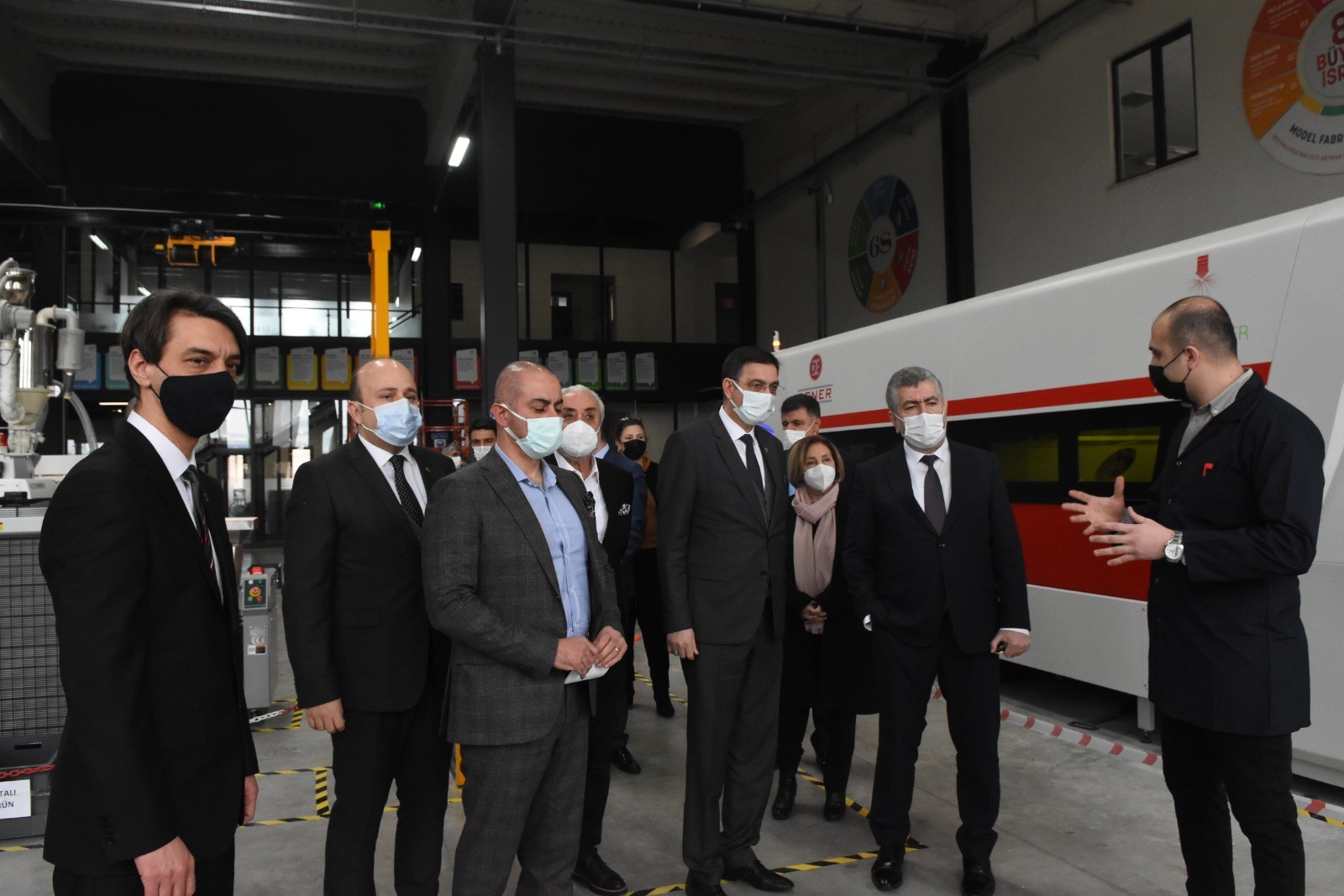 Program kapsamında model fabrikayı gezen ve yetkililerden bilgi alan Sanayi ve Teknoloji Bakan Yardımcısı Dr. Çetin Ali Dönmez, Model Fabrika’nın bölge sanayisi açısından önemine işaret ederek, tüm paydaş kurumları çalışmalarından dolayı kutladı. Model fabrikadan eğitim alan firmalara destek verildiğini belirten ve firmaları model fabrikanın sunduğu imkanlardan faydalanmaya davet eden Çetin Ali Dönmez, “Model fabrikadan eğitim alarak, işletmelerini dönüştürecek firmalara KOSGEB tarafından destek veriyoruz. Bu manada değişim ve dönüşümü sağlamak için desteklerden faydalanan firma sayımızı artırmamız gerekiyor. Daha önce KOBİ’lerin her biri ayrı olarak model fabrika desteği için başvuruda bulunuyordu. Şu anda ise model fabrikadan eğitim alacak işletmeler toplu olarak KOSGEB desteklerinden faydalanabilecekler. İnşallah bu çalışmalarla Gaziantep Endüstri 4.0’ı, dijitalleşmeyi, verimliliği başardıktan sonra yurtdışına danışmanlık desteği bile verebilecek duruma gelecek. Bunlar hayal değil, ülkemiz aşı çalışmalarında başarılı bir süreç yürütüyor. Fransa'da koronavirüs aşısı geliştirmek üzere çalışmalar yapan Pasteur Enstitüsü aşı çalışmalarını bıraktı. Onlar bırakırken biz devam ediyoruz. Demek ki biz yapabiliyoruz. Daha da iyi olacak inşallah" dedi.