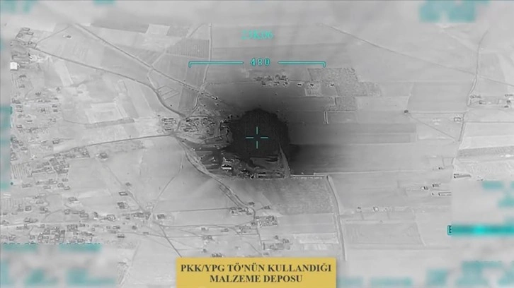 Görüntülerde Türk savaş uçaklarının kalkış yaptığı ve terör örgütü PKK/YPG'nin malzeme deposu, barınak gibi binalarını imha ettiği anlara yer verildi.