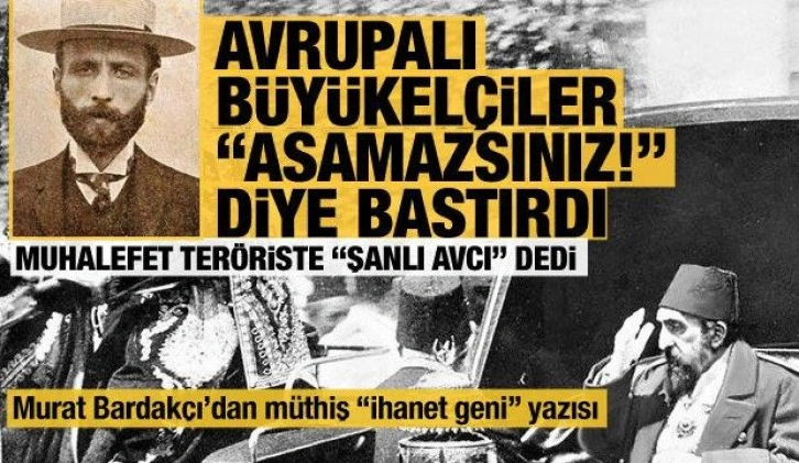 Bardakçı köşesinde, Sultan Abdülhamid Han'ın bombalı suikastle canına kast eden teröristin yargılandığı davada Avrupalı büyükelçilerin “Asamazsınız!” diye bastırıp serbest bırakılmasını şöyle aktardı;