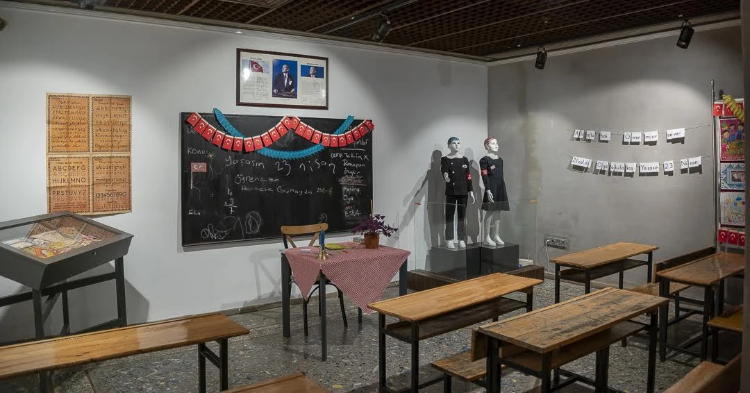 Yerel belleğe verdiği önemle de öne çıkan sergi, Gaziantep'te 23 Nisan kutlamalarının izlerini araştırıyor. Yerel gazetelerde yayınlanan haberler, yetkililer tarafından kaleme yazılan şiirler, kortej güzergâhları ve okulların bayram törenlerine ilişkin görsel olarak zengin özellikler sergilenerek sunuluyor. Siyah önlük, kara tahta, sınıf sıraları ve sınıf içi gibi nesnelerle temsili sınıf düzeni; Onlara nostaljik bir deneyim yaşatmayı amaçlıyoruz.