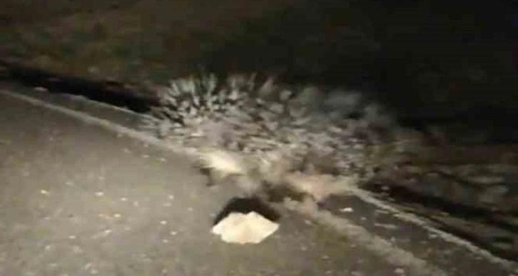 Batman'ın Sason ilçesinde nesli tükenme tehlikesi altında olan 2 oklu kirpinin, gece karanlığında ortaya çıktığı anlar bir vatandaş tarafından cep telefonu kamerasıyla kayıt altına alındı.
