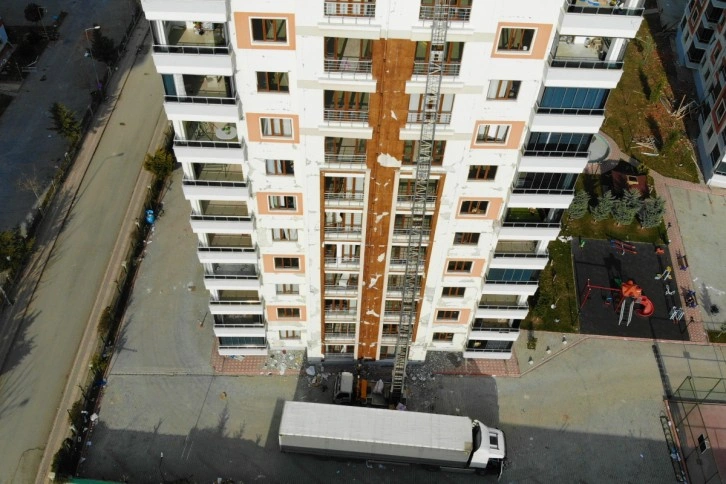 Kahramanmaraş merkezli iki büyük depremin ardından Malatya'da çok sayıda bina yıkılırken, çok sayıda bina da hasar gördü. Hasar gören binalar boşaltılırken, vatandaşlar ise eşyalarını taşımaya devam ediyor. Merkeze bağlı Yeşilyurt ilçesi Bostanbaşı Mahallesinde ağır hasarlı binalara gelen vatandaşlar, vinç yardımıyla dairedeki eşyaları aşağıya indirdi. Dairenin balkonundan vince yüklenerek asansörlü sistemle aşağıya indirilen eşyalar ağır hasarlı binaların önünde bulunan kamyonlara yüklendi. Vatandaşların eşya taşıma telaşı kameraya yansıdı. Eşya taşımalara şahit olan bir vatandaş ise vatandaşların eşya için canlarını tehlikeye atmaması gerektiğini vurguladı.