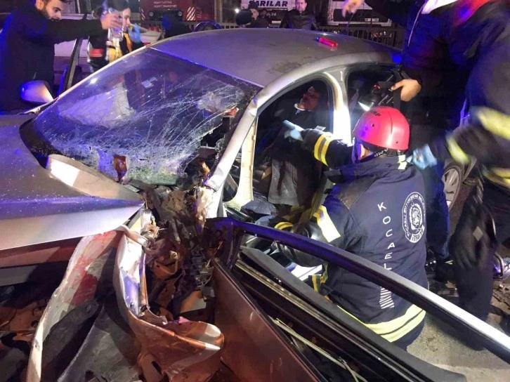Kocaeli D-100 karayolunda sürücünün direksiyon hakimiyetini kaybettiği otomobil bariyerlere saplandı, kazada 4 kişi yaralandı.