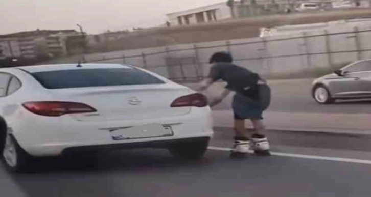 Batman'da otomobile tutunarak yolculuk eden patenli bir genç, hem kendi canını hiçe saydı hem de trafiği tehlikeye soktu. Yürekleri ağıza getiren gencin tehlikeli yolculuğu cep telefonu kamerasına yansıdı.