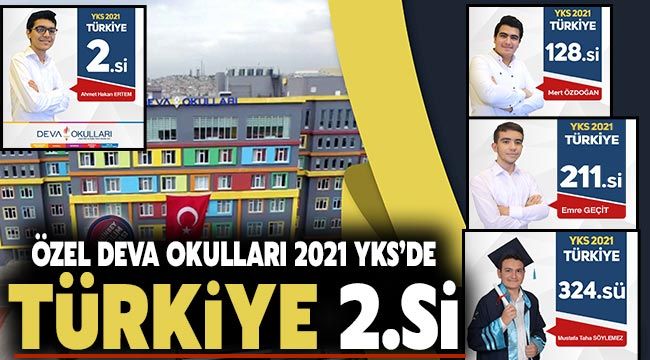 2021 YKS Türkiye 2.si Ahmet Hakan Ertem olurken Özel Deva Liselerinin gurur verici diğer Tükiye dereceleri şu şekilde açıklandı: