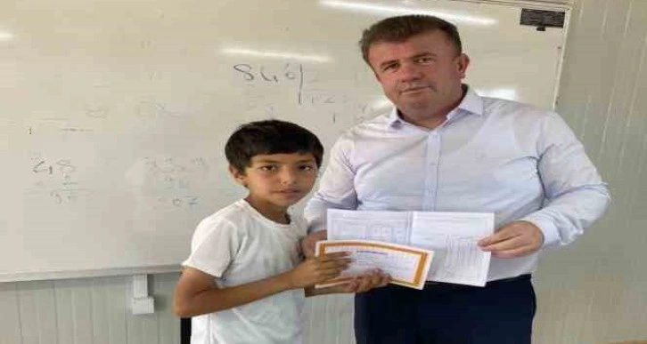 6 Şubat depreminde ağır hasar alan iller arasında yer alan Adıyaman'da depremzede öğrenciler için kurulan prefabrik okulda karneler dağıtıldı.