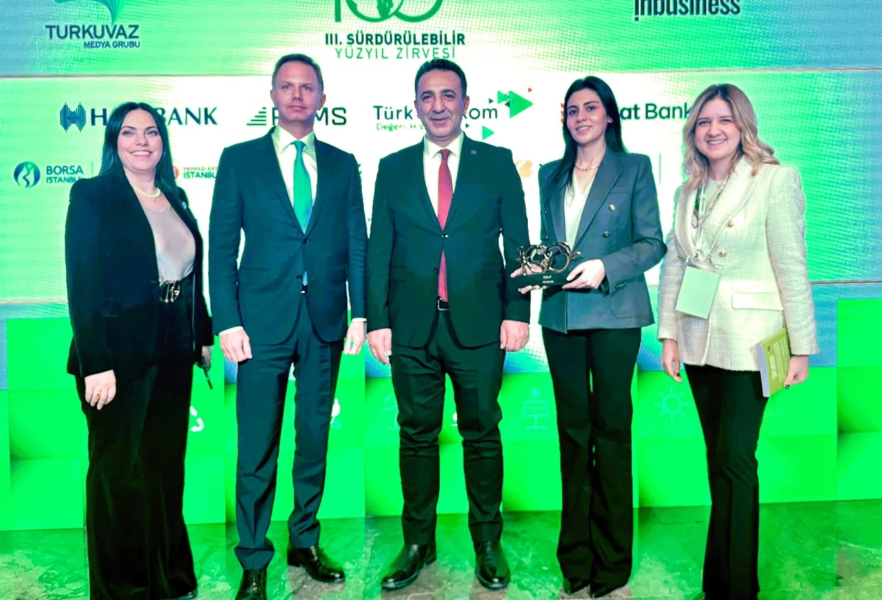 Sürdürülebilirlik alanında iyi uygulamalar geliştiren, dönüşüme öncülük eden kurum ve liderlerin değerlendirildiği ödüller, III. Sürdürülebilir Yüzyıl Zirvesi kapsamında düzenlenen törende sahiplerini buldu. Törende ödül, T.C. Çevre, Şehircilik ve İklim Değişikliği Bakanlığı İklim Değişikliği Başkanı Prof. Dr. Halil Hasar tarafından RE&UP Büyüme ve Stratejiden Sorumlu Direktörü Engin Mete ile Büyüme ve Stratejiden Sorumlu Kıdemli Yöneticisi Gözde Konukoğlu’na takdim edildi.